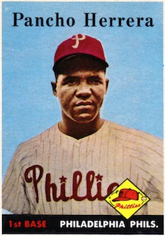 In 1958, the Philadelphia team promoted Herrera to their Opening Day roster at the age of 24. One of his teammates was fellow Cuban Humberto “Chico” Fernandez. The original version of Panchón’s Topps baseball card that year (#433) became prized by card collectors, as it was printed in error, showing the name as “Herrer.” The omission of the letter “a” at the end made the error card more valuable than those of Mickey Mantle and Willie Mays! In October 2009, one example in near-mint condition sold for $8,365.00.